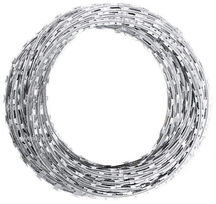 Ei pelkästään piikkilankaa, vaan tosi hyvin (tai ikävästi, riippuu näkökulmasta) suunniteltua piikkilankaa 10 metrin rullassa. Tositarkoitukseen valmistettu, samaa tavaraa käyttävät myös viranomaistahot, sotilasinstanssit ja muut. On olemassa piikkilankaa ja sitten ns. natolankaa. Natolanka on kuin piikkilankaa, mutta vähän parempaa ja hankalammin katkaistavaa. Siinä missä klassinen piikkilanka on vain paksua rautalankaa piikikkäillä solmukohdilla, on tämä vähän enemmän – lanka itsessään on leveämpää, vaikeammin katkaistavaa ja ne ”piikit” muistuttavat enemmänkin partahöylän teriä. Nimitys ”Concertina” tulee vähintään yhtä ikävästä soittimesta – lankarulla kun kuuluu venyttää haluttuun pituuteen. Ja toden totta, se mitä concertina tekee korville, tekee natolanka ruumiille. Tämä onkin erinomainen tapa eristää alue ei-toivotulta liikehdinnältä. Käärön leveys 45 cm, pituutta riittää kattamaan noin 10 metrin matk
