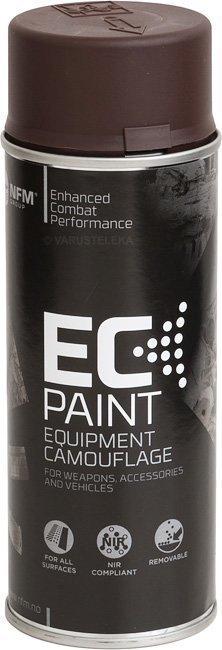 Kunnon hyvää norjalaista sotamaalia, tällä maalaat pyssyt, varusteet ja mitä ikinä haluatkaan naamioida piiloon ihmissilmältä. Eikä vain paljaalta silmältä, nämä ovat nääs myös NIR-heijastusarvoiltaan tarkkaan tehtyjä, eli värit toistuvat luonnollisesti myös valonvahvistimien läpi katsottuna. HUOMIO! Koska aerosolit ovat aika vaarallisia ja räjähtelevät tuon tuostakin, posti ei niitä kuljeta. Tarkoittaa sitä, ettei näitä lähetetä ulkomaille ja Suomessakin vain Matkahuollon kautta. Värivalikoima on laaja ja riittää ihan kaikkiin ympäristöihin: pari eri vihreää, ruskeita sävyjä aina vaaleasta hiekkasävystä kojootinruskeaan ja tummaan mutaruskeaan. Mukana myös arktisiin olosuhteisiin tarvittavat harmaa ja valkoinen, erinomaisia myös rakennettun ympäristön mukaan maalailuun. Myös pikimusta löytyy, oiva pikku lisä jos haluaa tuoda ylimääräistä syvyyttä muuten litteisiin pintoihin. Valikoimaan kuuluu myös EC Paint Remover jolla saat maalisi helposti putsattua po
