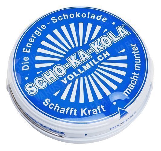 Sakemannien räväkästä energiasuklaasta on näin modernilla aikakaudella tehty tämmönen maitosuklaaversio. Sama kofeiinisisältö, maistuu vaan makeammalta. Tää on (myös) tosi hyvää, suosittelemme! Alunperin Berliinin olympialaisissa urheilukäyttöön kehiteltu suklaa löysi tiensä nopeasti sotilaskäyttöönkin. Purkki Scho-Ka-Kolaa kuului saksalaisen lentäjän rautaisannokseen, mutta muodosti hirmu tärkeän osan myös jalkaväen muonitussysteemiä. Purkkeja jaettiin erityisesti silloin, kun sotilaita väsytti ja moreenia piti kohottaa. Vaaleampi, Mod. Vollmilch ei sodassa käyttöä nähnyt, se kehitettiin tumman suklaan suuren menestyksen siivittämänä moderneina aikoina kakkosvaihtoehdoksi – kaikille tumma suklaa ei maistu, ja jotkut haluvat joskus ihan vaan vaihtelua. Jos on tarkoitus piristää isompaa porukkaa tai säilyttää tämä väärissä käsissä vaarallinen taisteluhuume paremmassa suojassa, on saksalaismallinen
