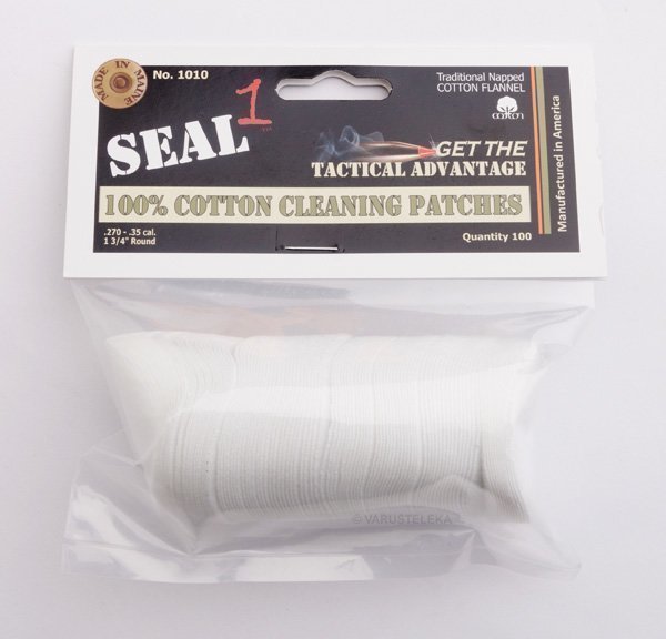Simppeleitä puuvillaisia aseenpuhdistuslappusia. Tökkää tikunnokkaan ja tunge piippuun, rassaa ja vedä ulos. Näihin voi myös sotkea Seal 1:n CLP:tä ja sitten rassata piippu, tosin siihen hommaan löytyy myös valmiita lappusia. Pussissa 100 kpl, eli riittävät pitkäksi aikaa. Mitoitettu eri kaliiperin piipuille sopivaksi, halkaisija on itse puuvillapalan halkaisija: .22-.270: halkaisija 3,18 cm .270-35: halkaisija 4,45 cm .45-.58 (20 ga): halkaisija 6,35 cm 12-16 ga: halkaisija 7,62 cm Valmistettu USAssa.